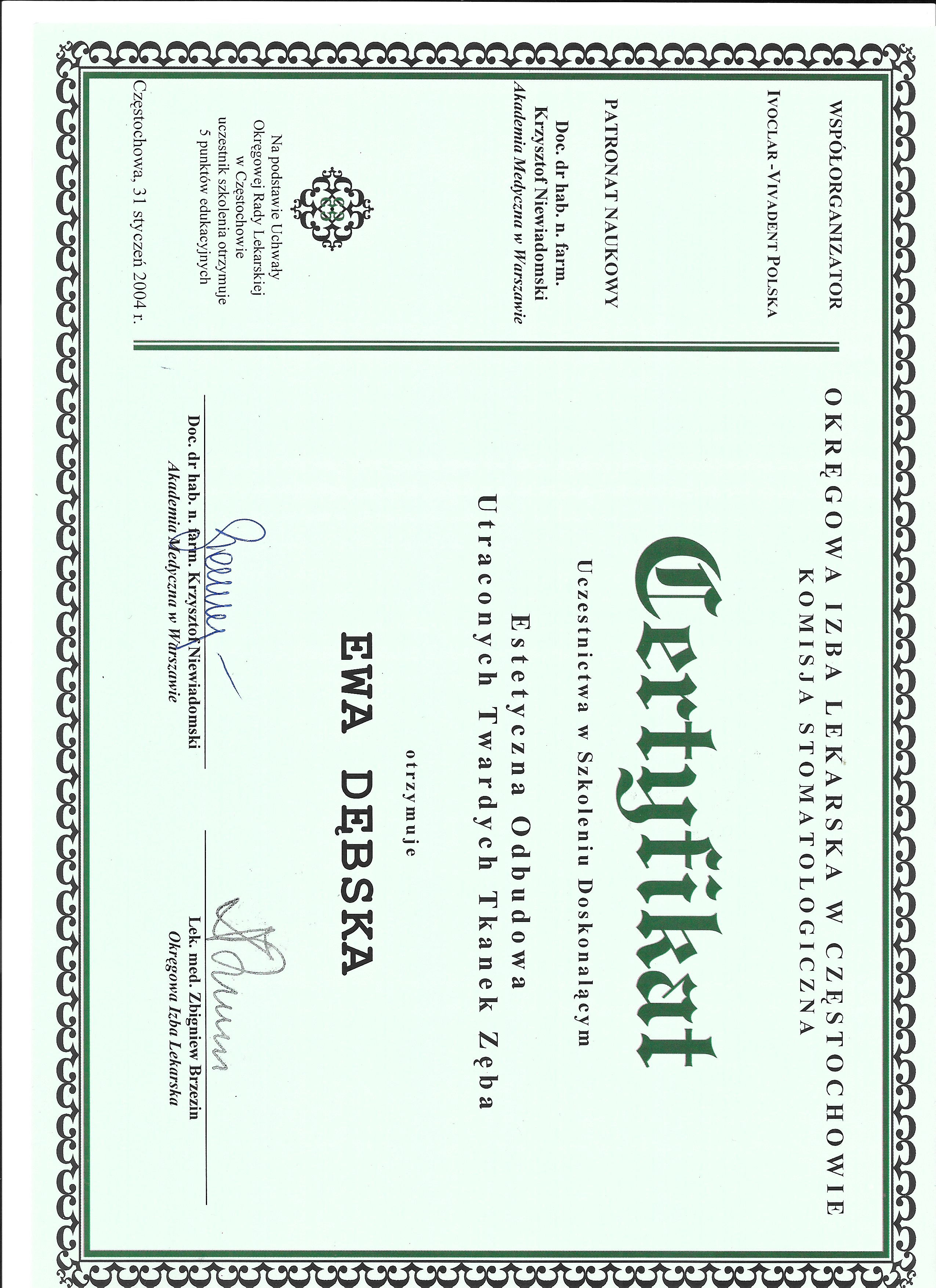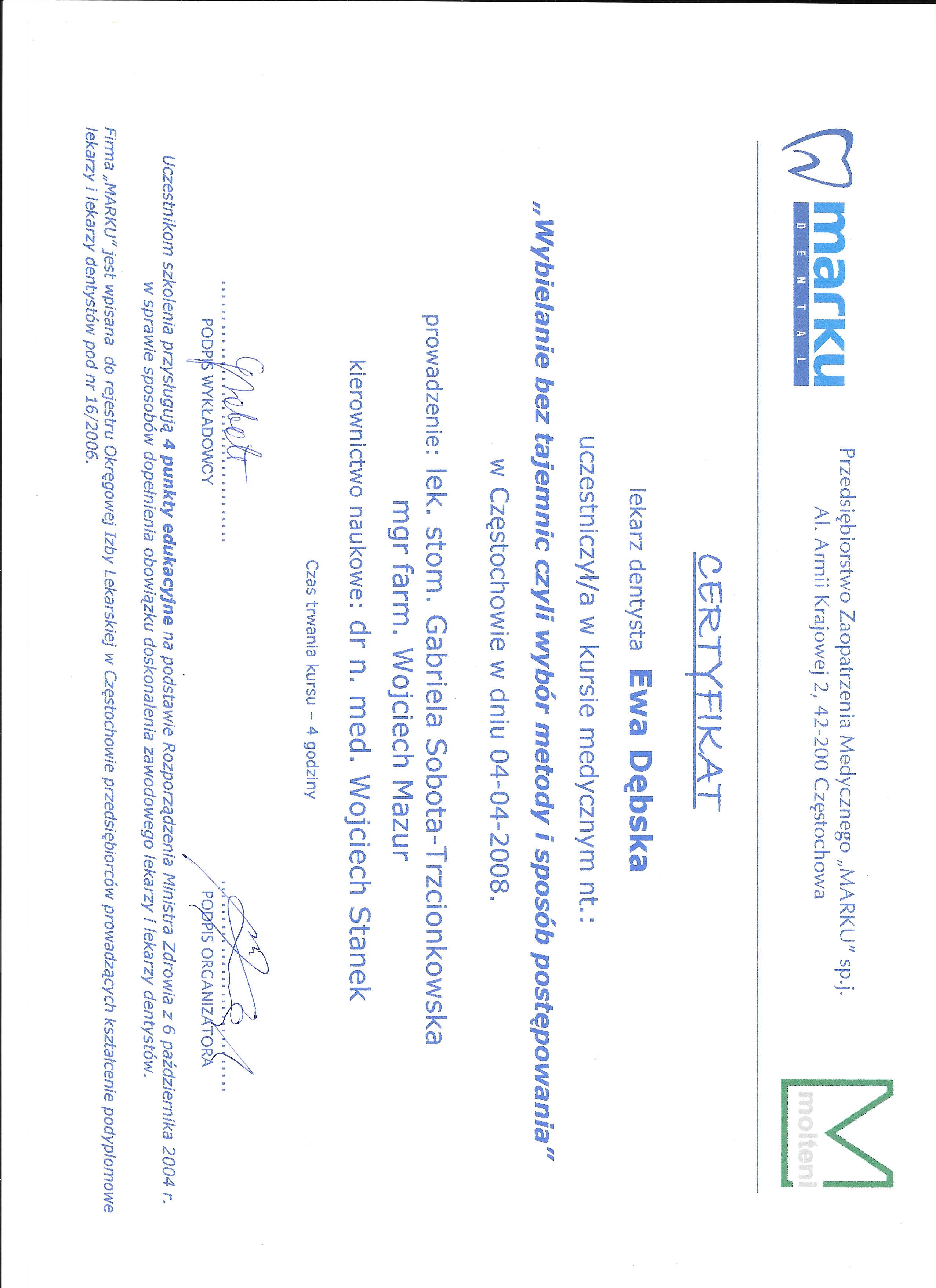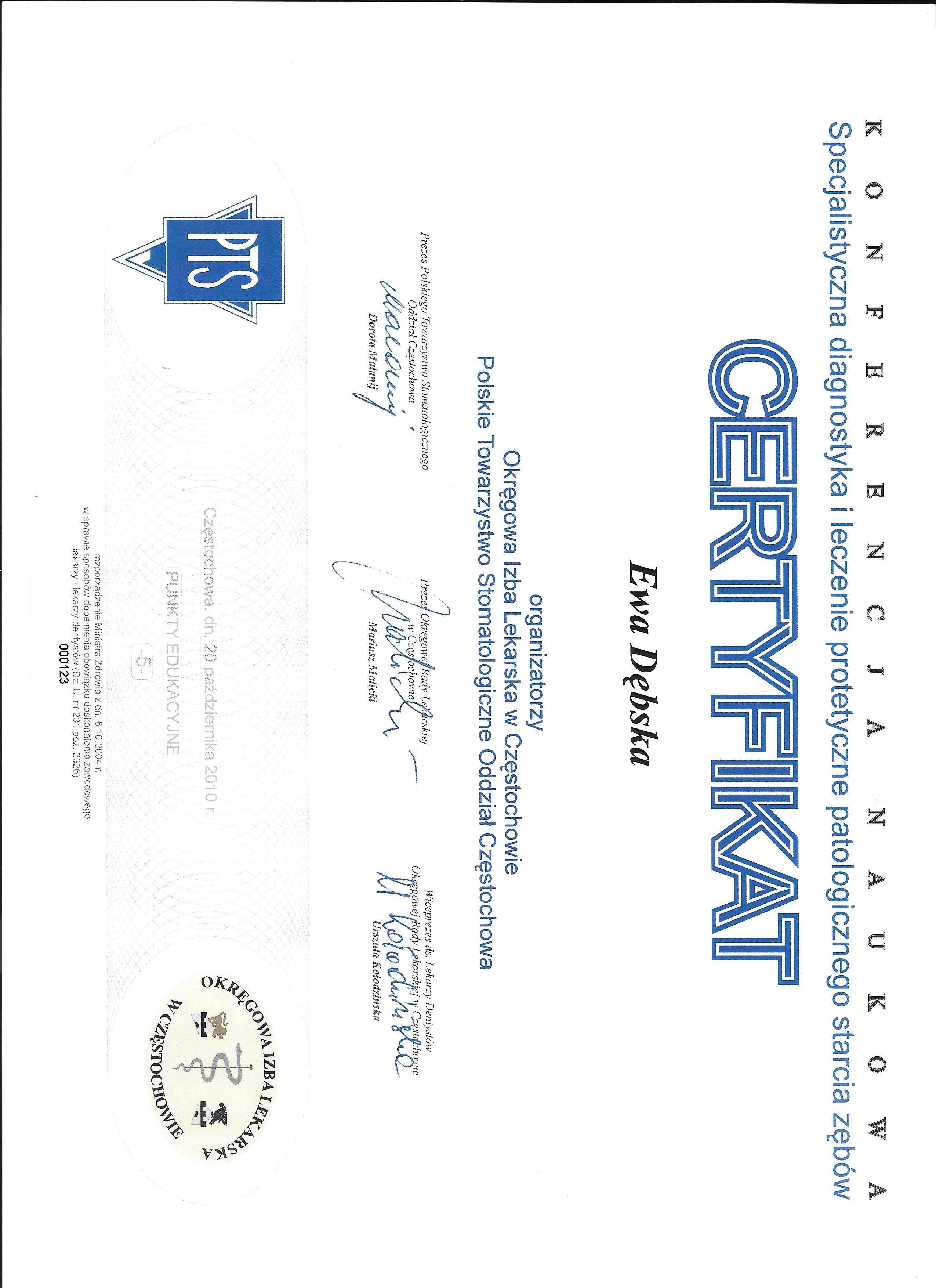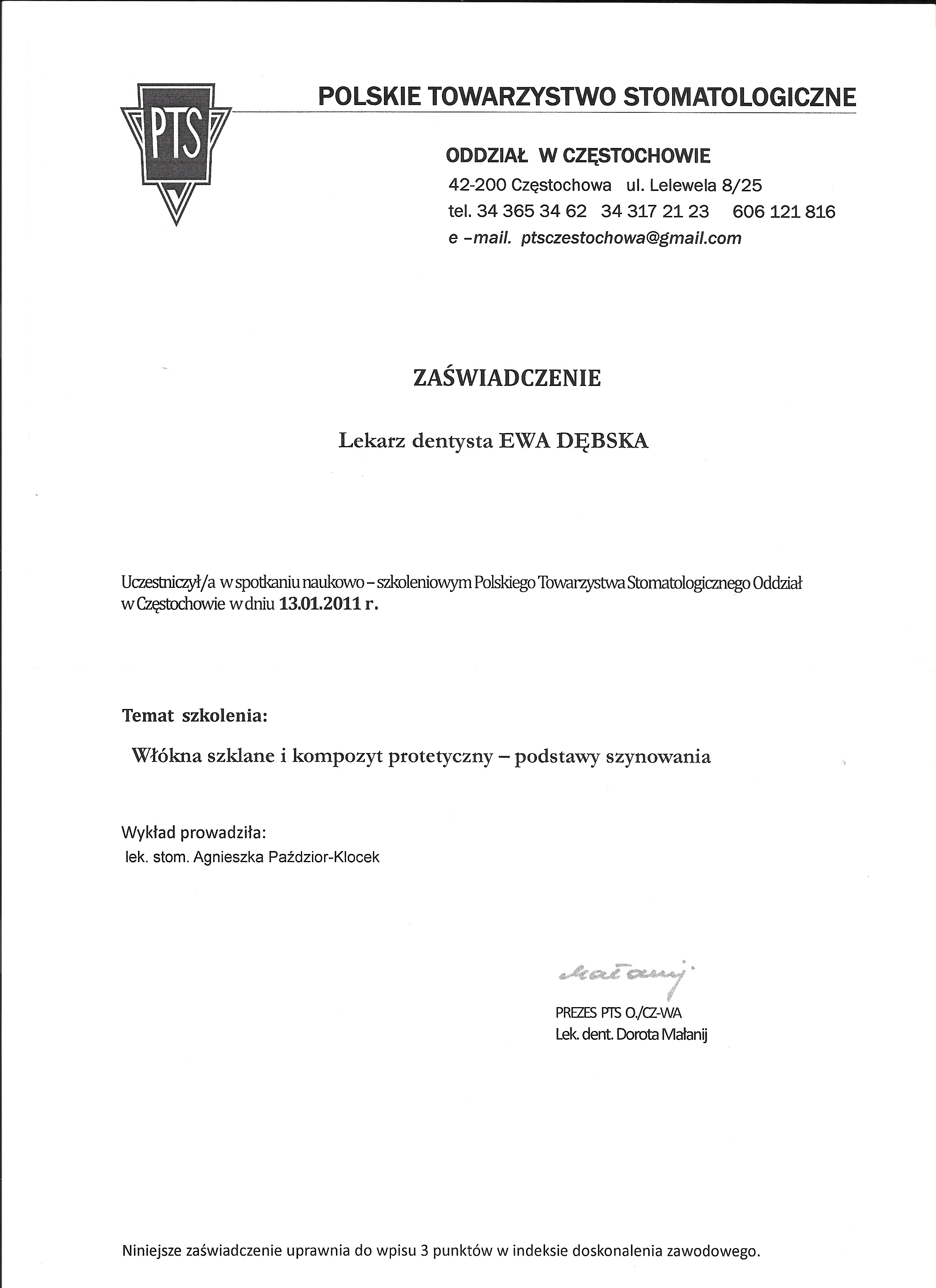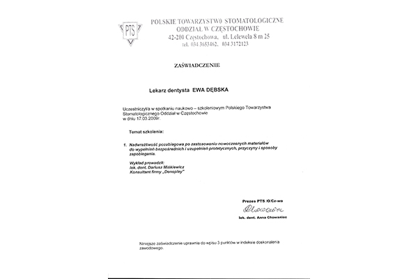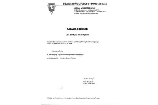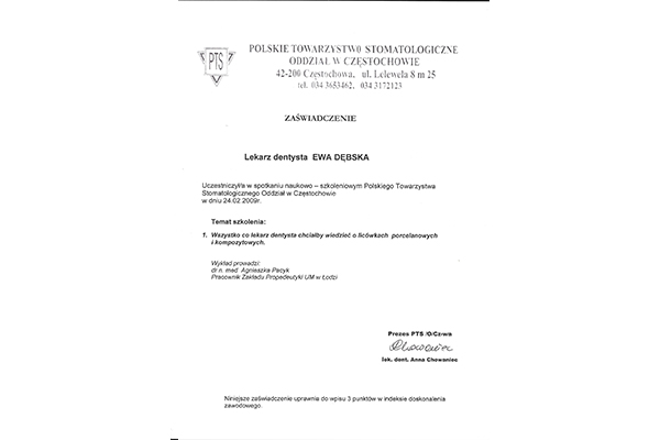lek. stom. spec. stom. ogólnej Ewa Dębska-Kunicka