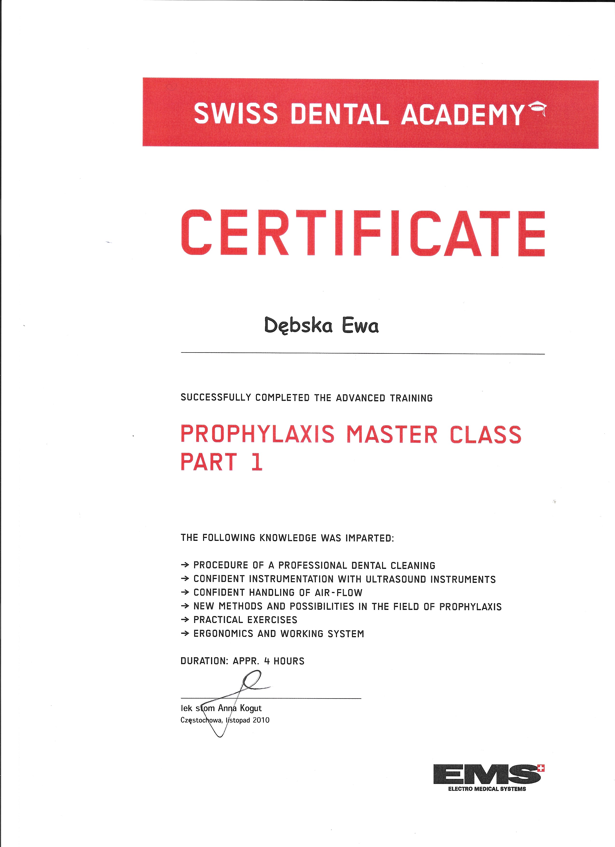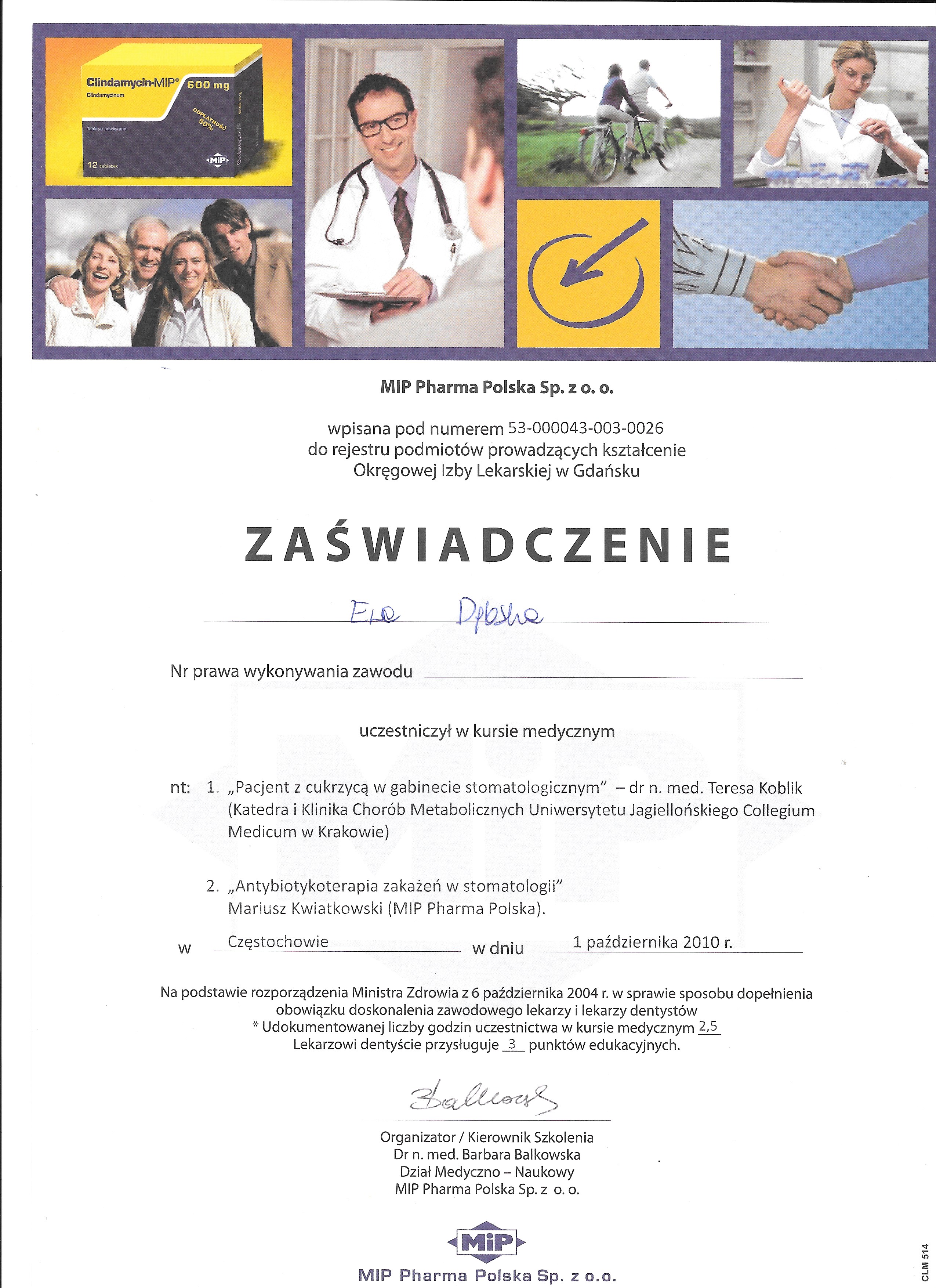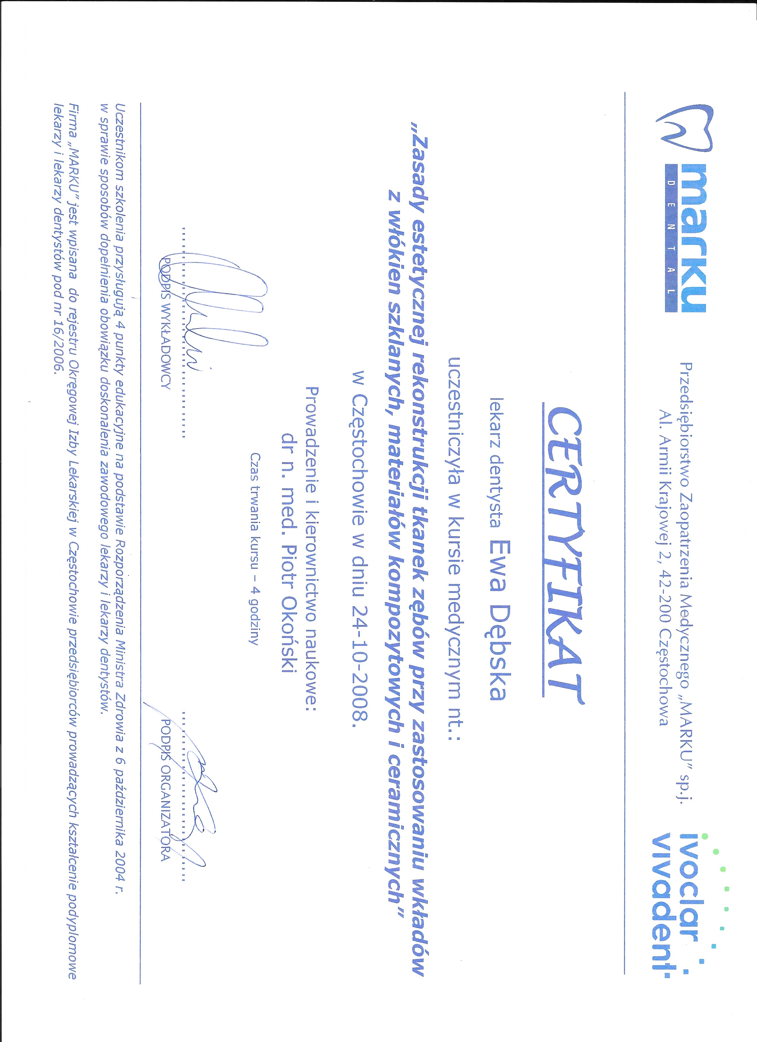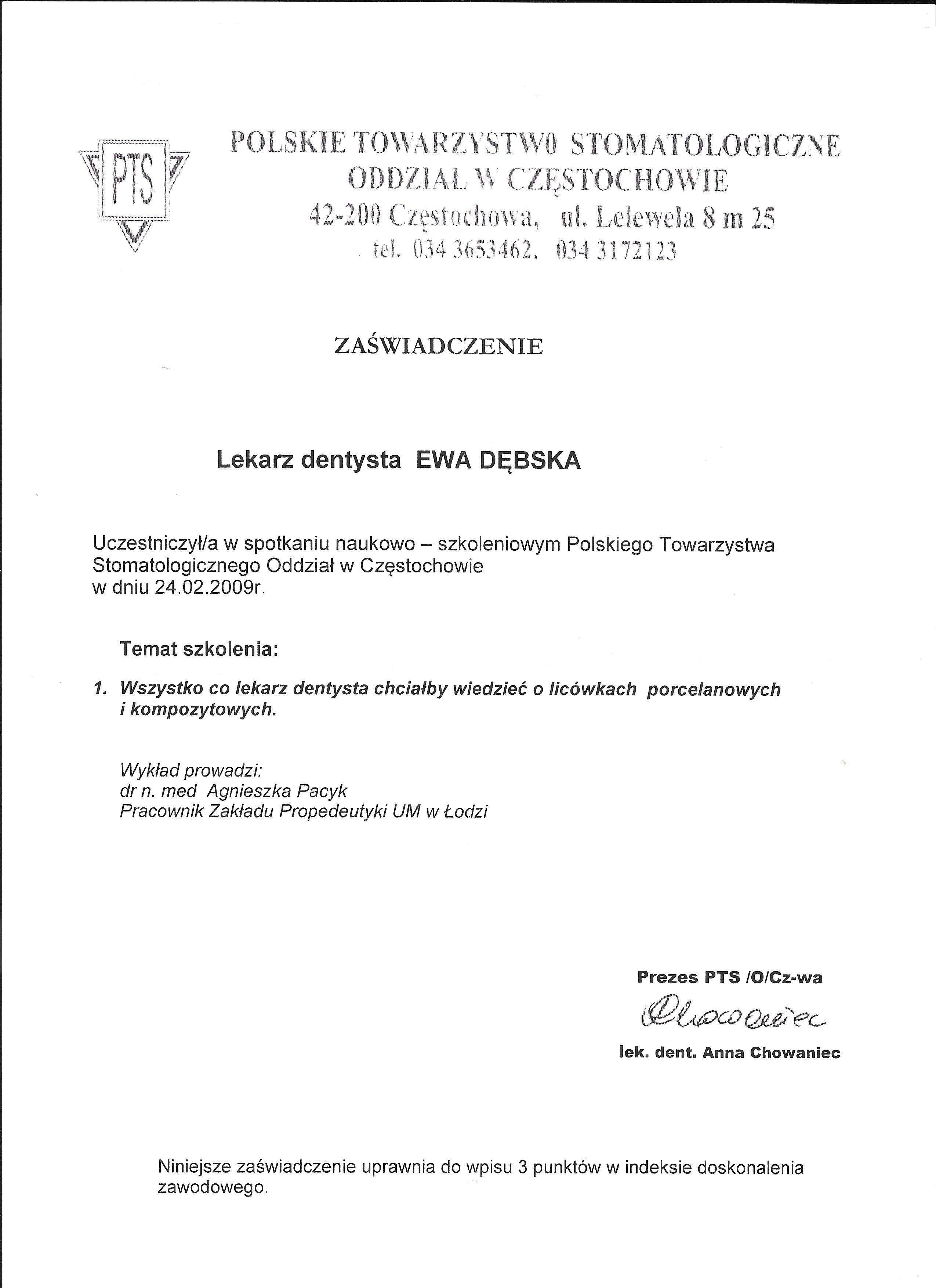 lek. stom. spec. stom. ogólnej Ewa Dębska-Kunicka